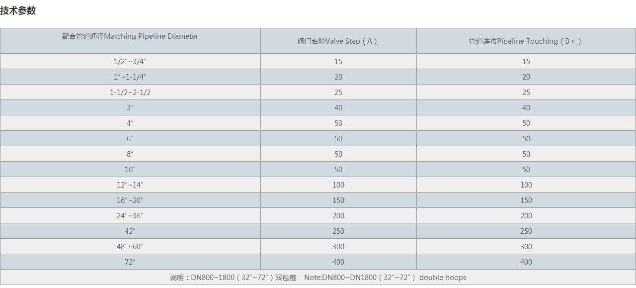 | 說(shuō)明:DN800~1800(32″~72″)雙包箍 Note:DN800~DN1800(32″~72″) double hoops | ||