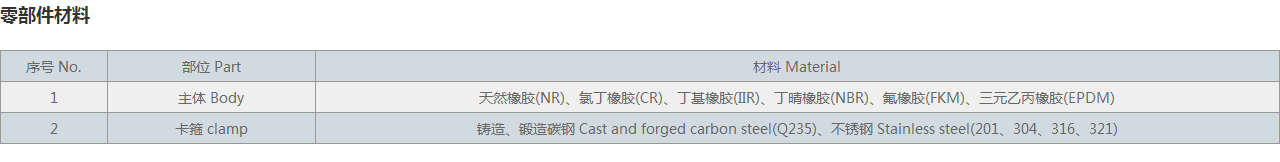 | 2 | 卡箍 clamp | 鑄造、鍛造碳鋼 Cast and forged carbon steel(Q235)、不銹鋼 Stainless steel(201、304、316、321) |