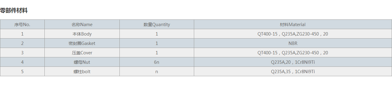 | 4 | 螺母Nut | 6n | Q235A,20,1Cr8Ni9Ti |